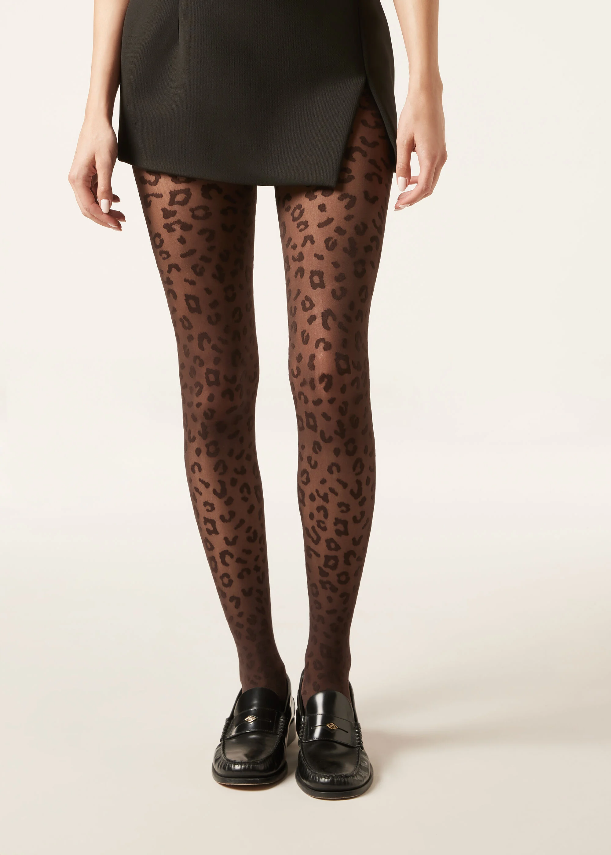 30 denier sheer tights with tone-on-tone animal pattern. Cotton gusset.